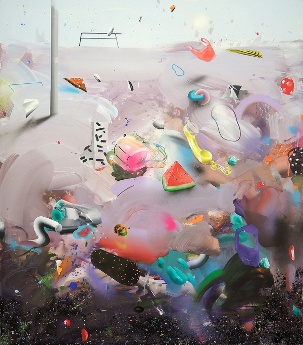 acrylic and spray on canvas